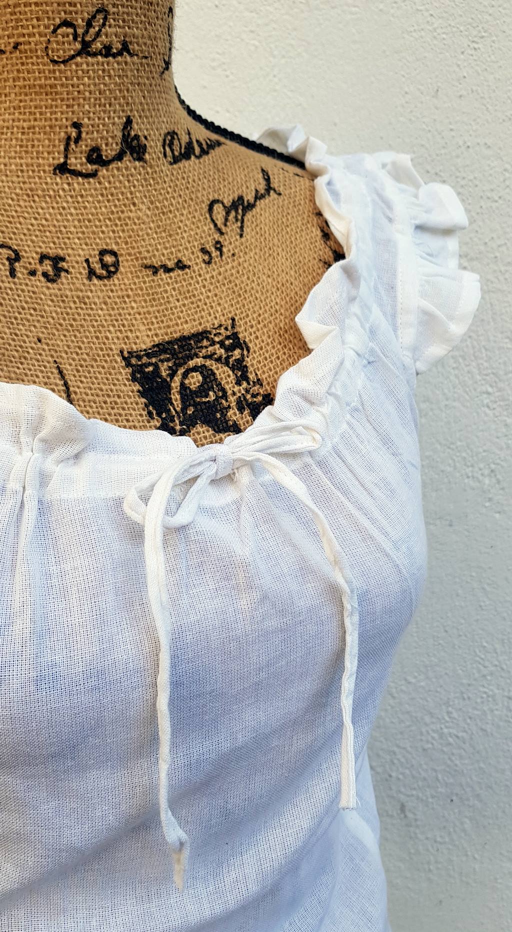 Bei hohen Temperaturen ist eine Gewandung manchmal wirklich einfach zu warm. Wenn ihr euch daher auf das allernötigste beschränken möchtet ohne auf den Mittelalter Style zu verzichten, dann empfehlen wir diese kleine niedliche Bluse mit Schulter Rüschen. Sie kann auch gut zu einem Rock oder unter einem Mieder oder einer Weste getragen werden