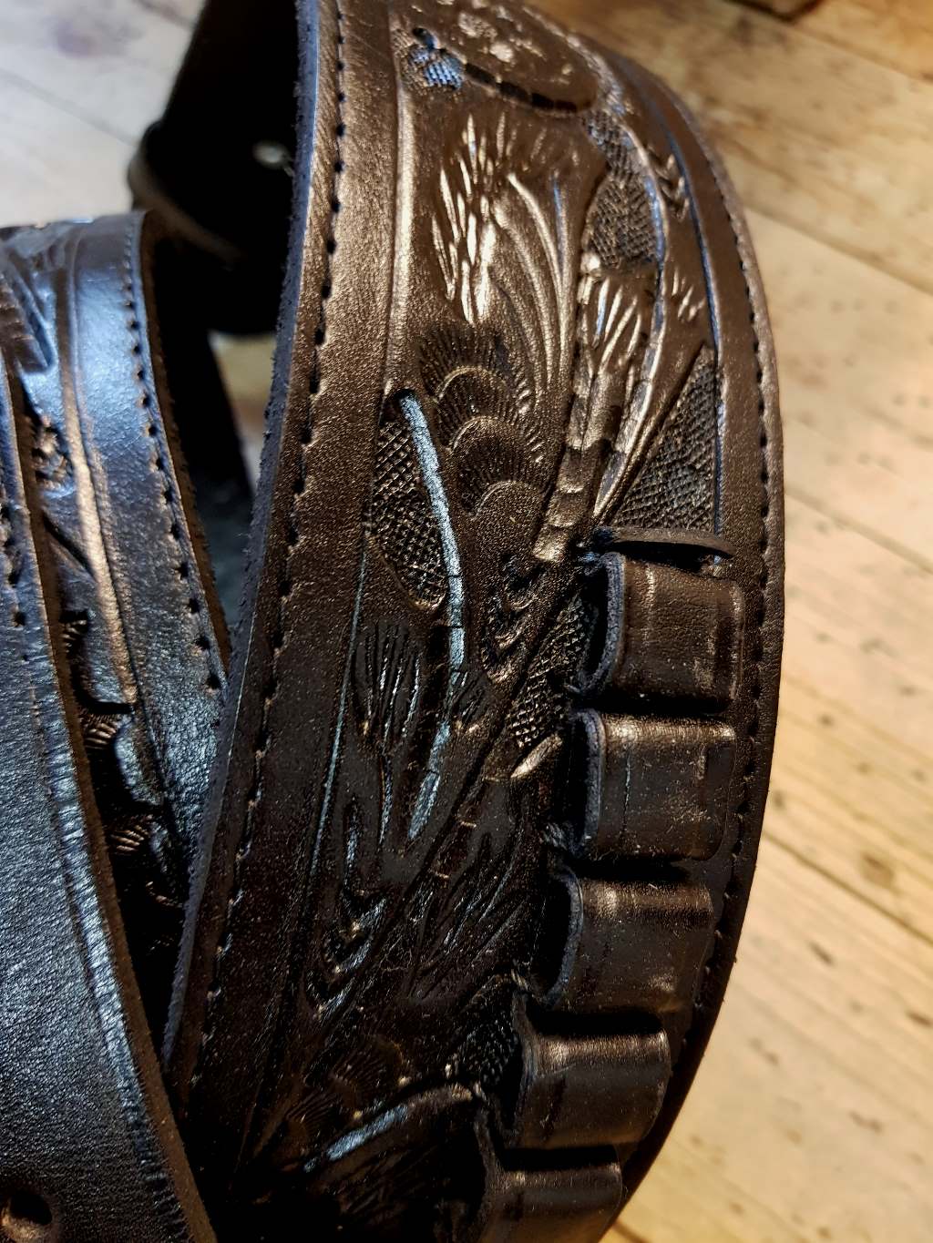 Coltgürtel punziert echtes Leder und sehr robust. Der Gürtel hat 2 Holster für Kaliber 44/45 Peacemaker. Es gibt ca. 4-5 Löcher zum verstellen, daher haben wir hier mehrere Größen, die möglich sind. Wir verkaufen ihn OHNE die Patronen