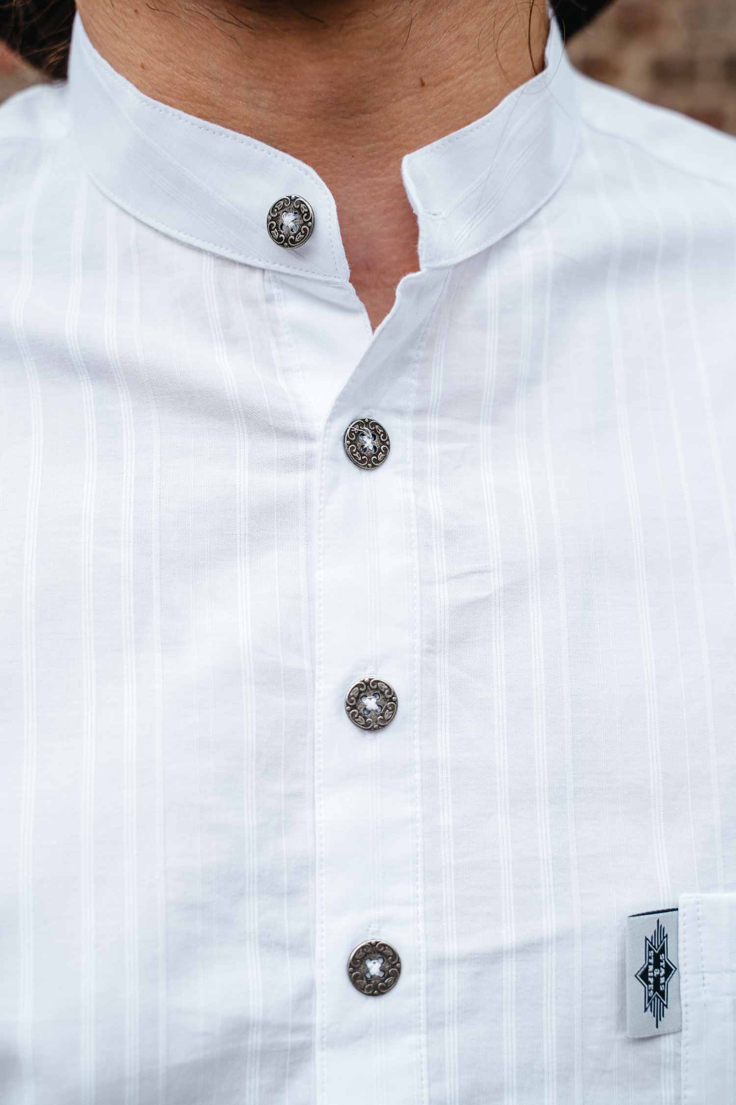 weißes Farmer Hemd mit schönen Streifen im Muster und halber Knopfleiste mit echten Metallknöpfen. Ihr könnt es entweder edel "schick" tragen zum Gehrock oder z.B. mit hochgekrempelten Ärmeln auch als einfaches Farmerhemd.![]()