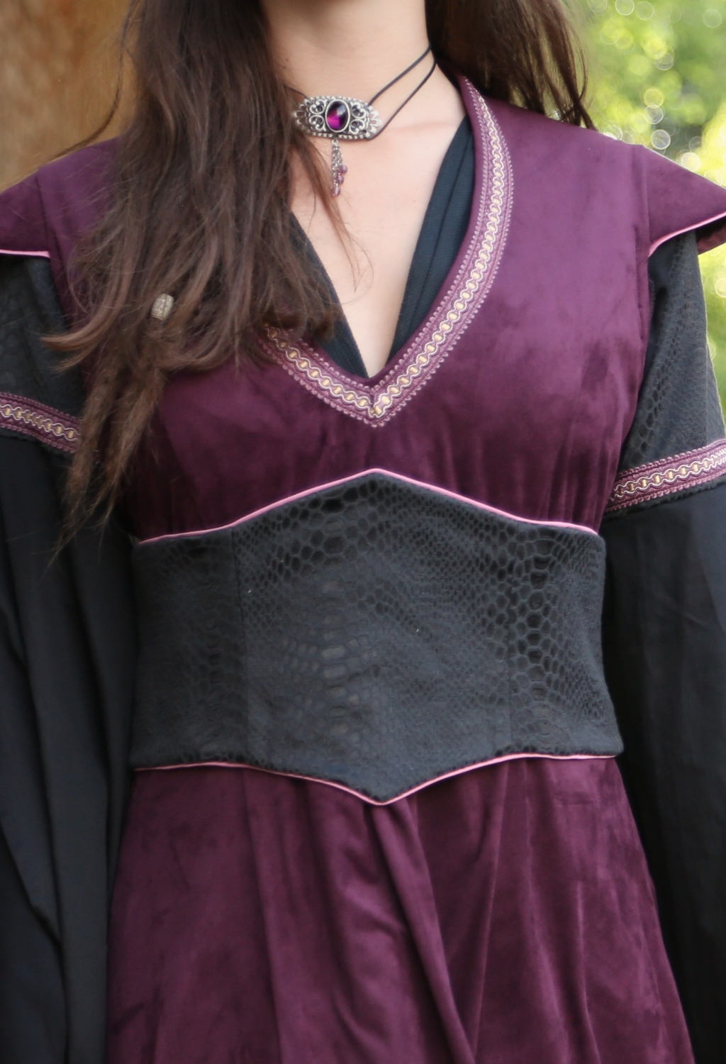 Schweres, im japanischen Stil der beliebten "Thrones Serie" nachempfundenes Mittelalter Kleid. 4 -teilig gefertigtes Gewand von sehr hoher Qualität in schwarz-aubergine