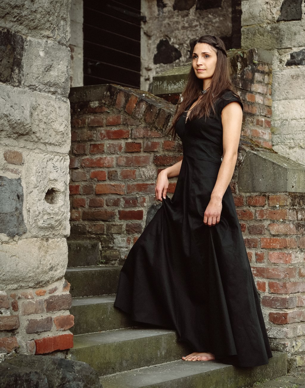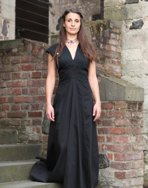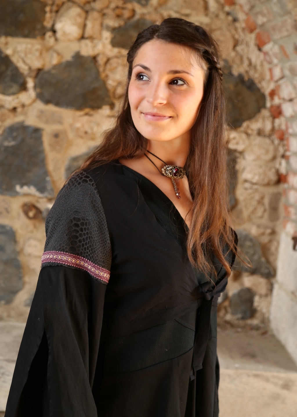 Das heißt, ihr könnt den Bolero einfach ausziehen und das Kleid mit kurzem Ämel tragen und nur mit Gürtel oder wahlweise mit Überkleid und Gürtel. In der Serie werden oft Kleider nur mit kurzen leicht über die Schulter fallenden Ärmeln getragen.