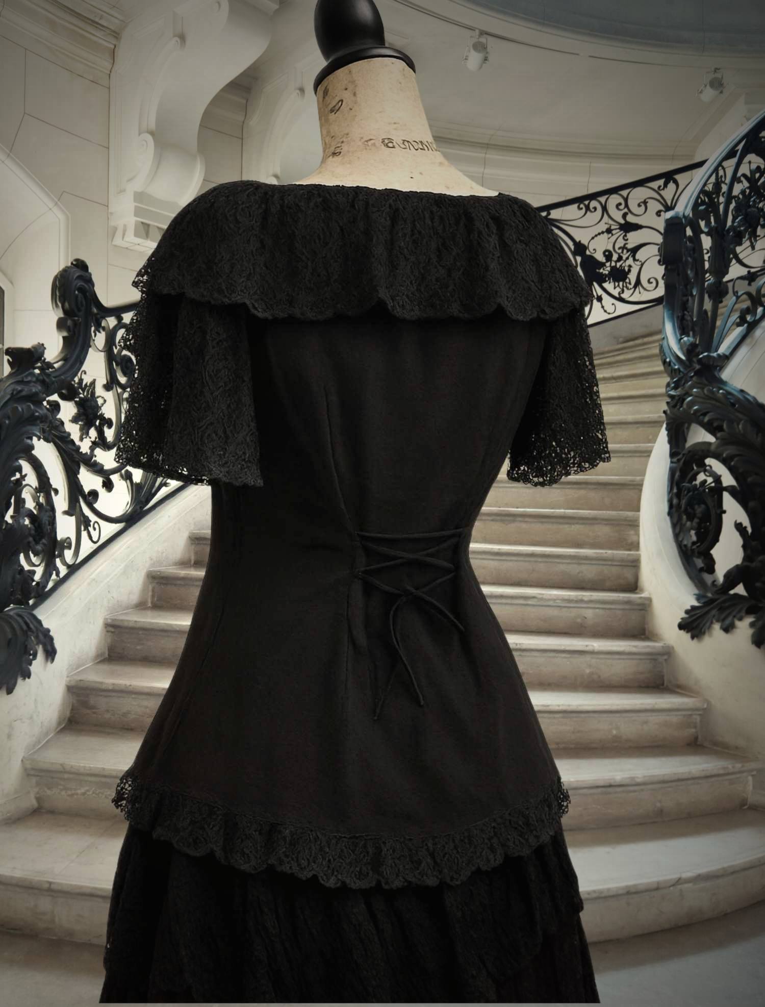 Schwarze, lange Kurzarm Bluse "Meggy"