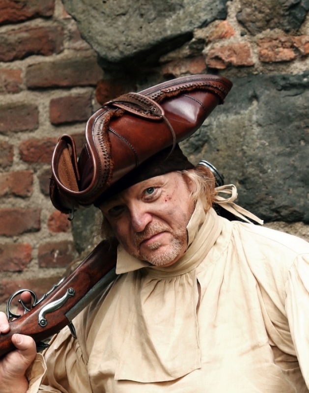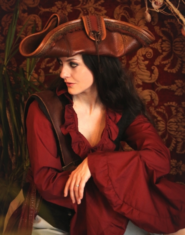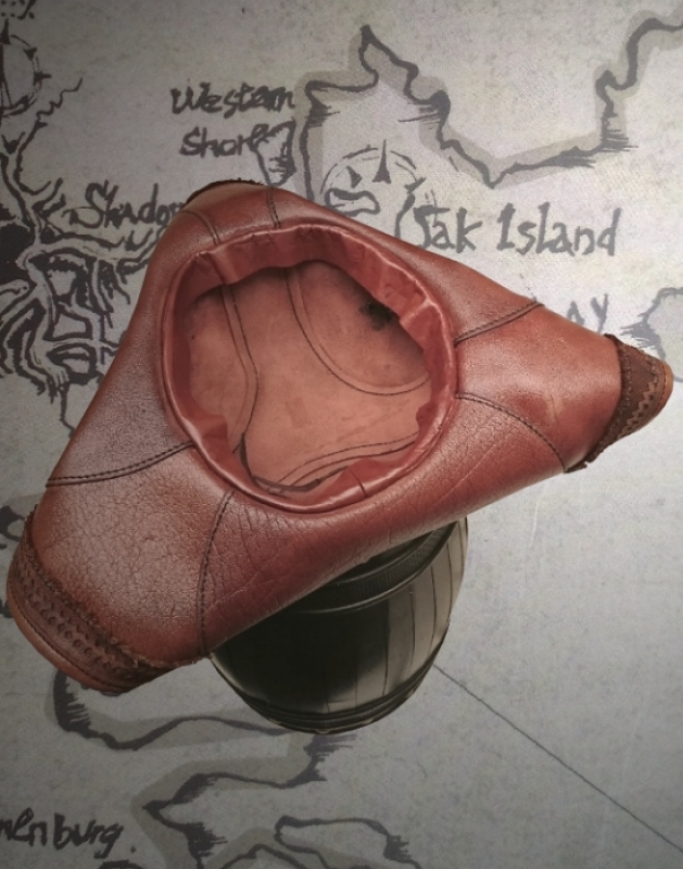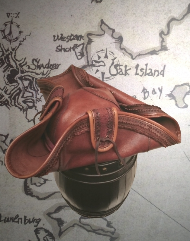 Sehr robuster und schon recht großer Piratendreispitz aus Natur Voll Leder. Rötlich-braune Farbein der Auswahl braun, wird mit der Sonne auch eher so wie auf Bild 2!
