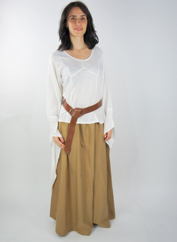 Mittelalterlicher Bauernrock aus Baumwolle-Leinen Mix in 2 Farben. Weit und bequem geschnitten mit eingearbeitetem Gummizug und einem Band zur zusätzlichen Regulierung der Taillienweite vorne.