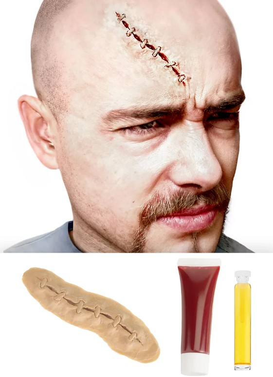 Lieferumfang: 1 große Naht mit Latexkleber und Kunstblut