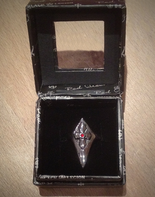 Hübsch gearbeiteter Ring Kreuz mit rotem Stein, passend zu vielen Dracula, Vampieren, allerdings eher für kleine Damenhände geeignet