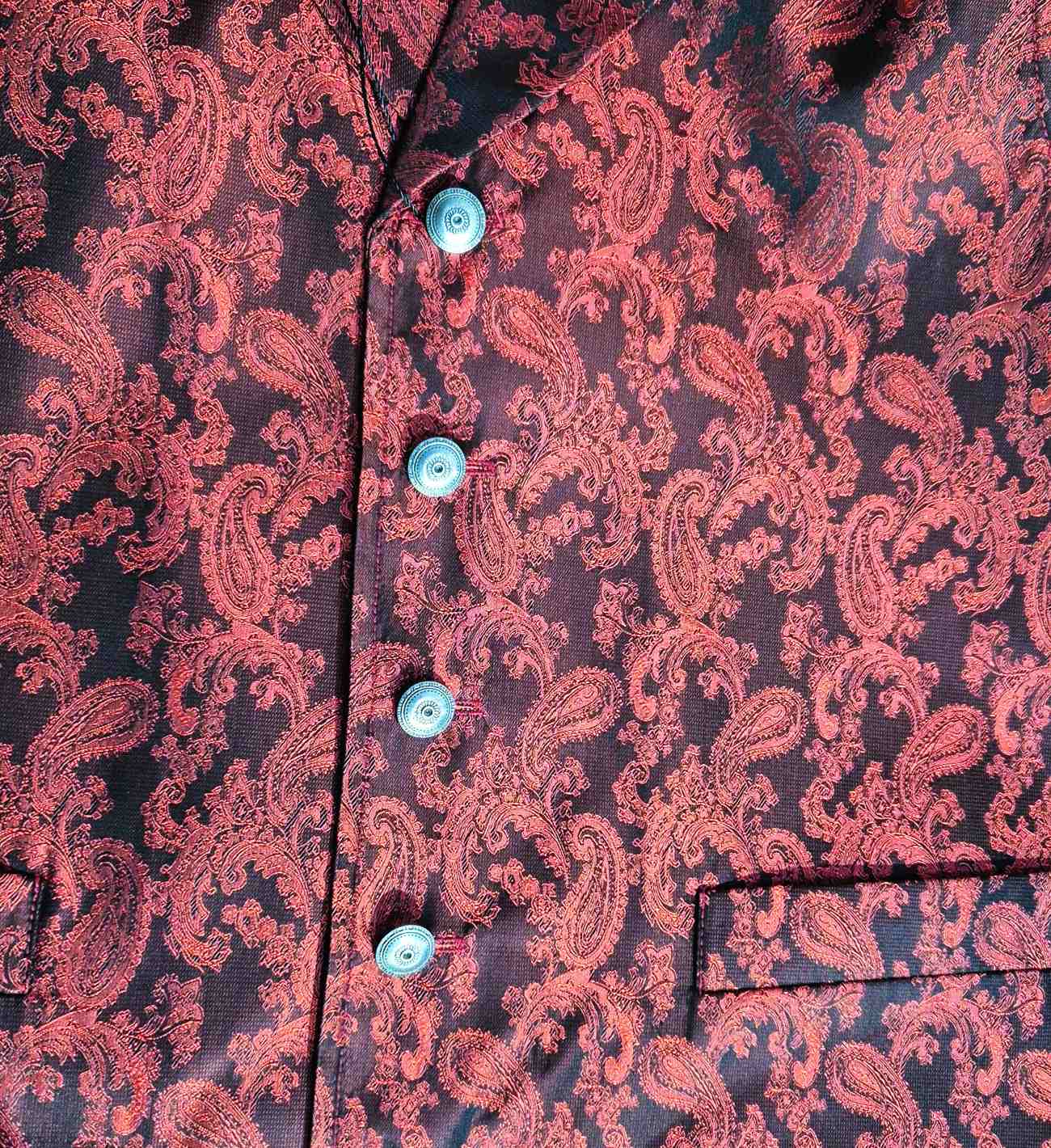 Ob Steampunk, oder Hochzeit oder Old Western Style, Pirat (siehe letzte Photo), alles ist drin mit dieser schönen Jacquard Weste! Hochwertige edle Knöpfe mit schwarzem Innenkern. Der kleine Schalkragen geht bis zur Schulternaht.