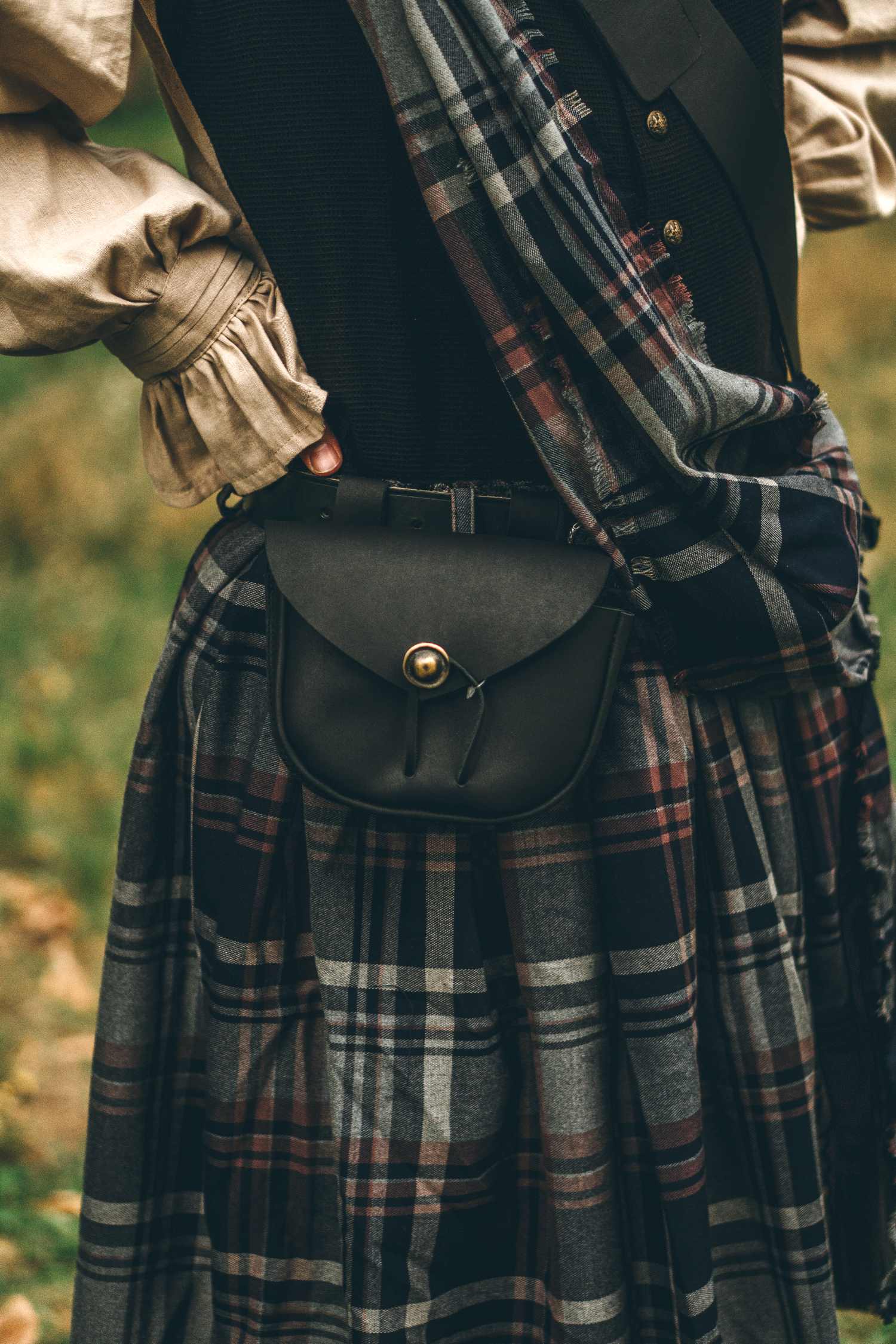 Sieht elegant schlicht und sehr historisch aus, eher späteren Datums um 17Jhd. Sollte auch zum Zeitalter der Piraten ud Schotten gut passen. Mit spezieller Lederschlaufe und 2 extra breiten Gürtelschlaufen durch die nahezu jeder breite Gürtel paßt