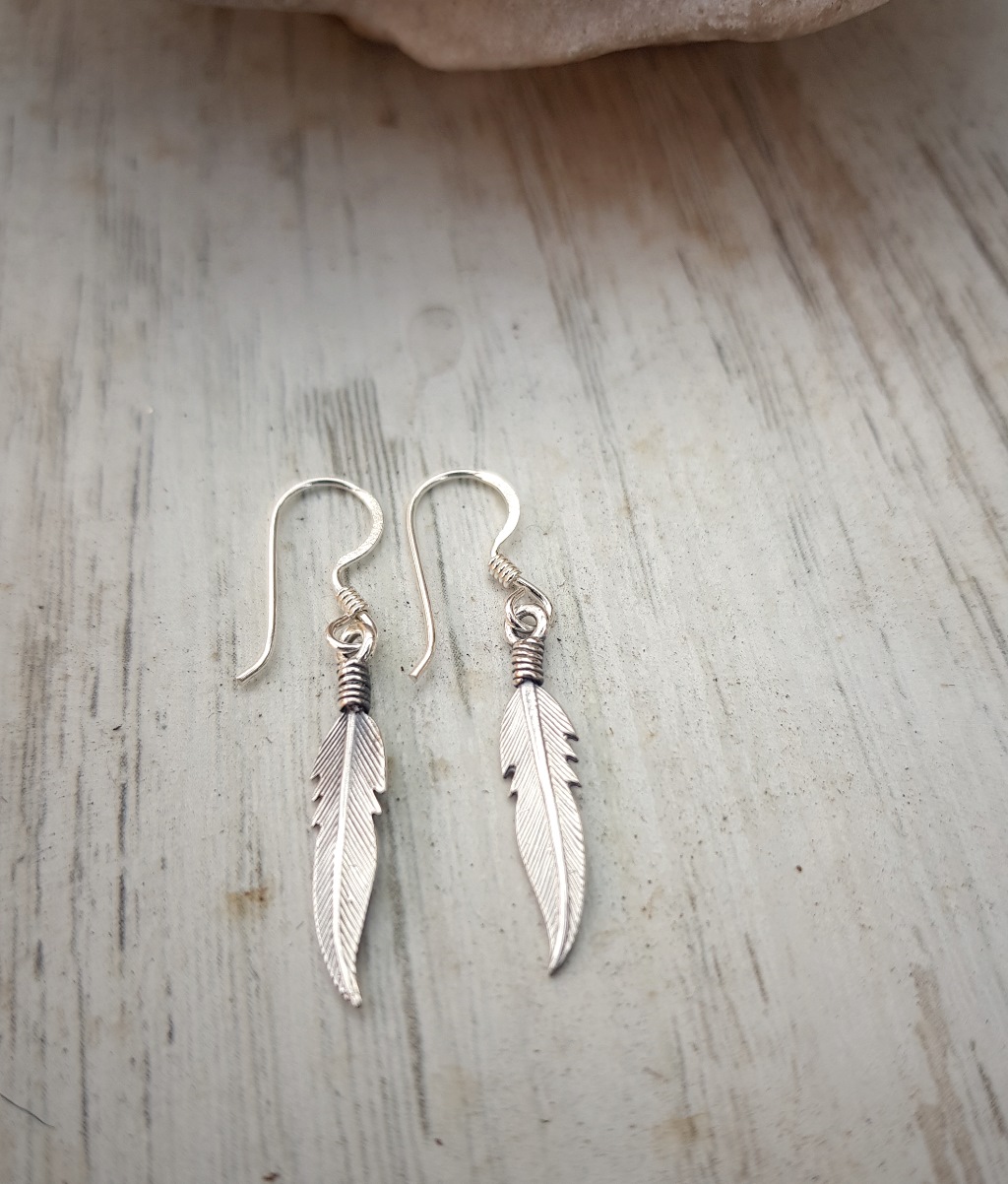 Echte Silber Ohrringe für Damen, die nicht so sehr auffallen möchten. Der kleine Ohrhänger mit der Feder ist wunderschön und sehr dezent.