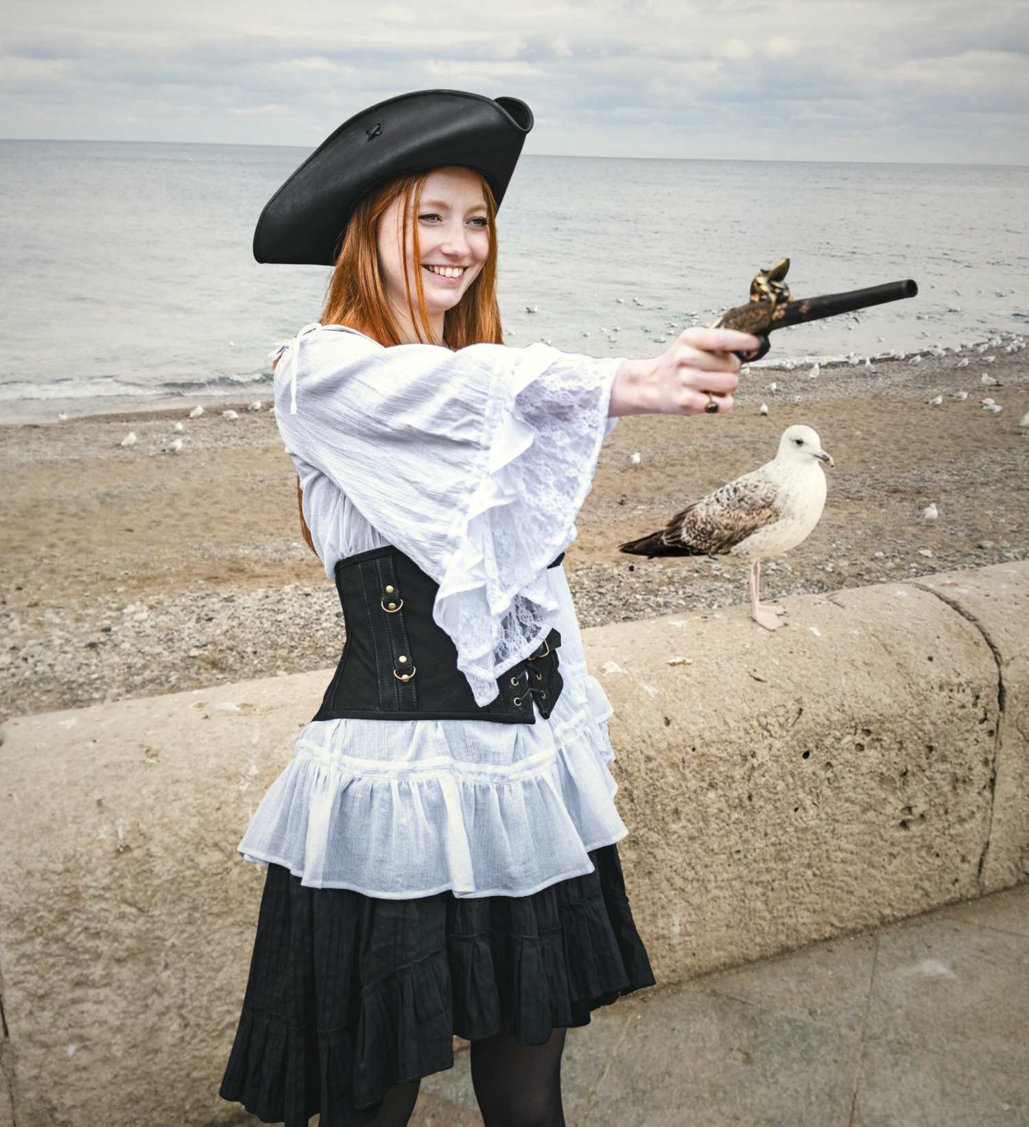 Lieferumfang: nur der Überrock ohne Unterrock oder anderes Zubehör Der Bund ist ca. 5cm breit und die Schleife nochmal ca. 1meter lang. Das heißt der Rock kann auch mit sichtbarer Schleife getragen werden. Hier haben wir eine Corsage drüber abgebildet. Material: schwarz= Taft 60%PE 40% PA und 100%PL braun= leichte Viskose 78% Viskose 22% Nylon mit Tüll innen und Popelinfutter innen, damit man den Überrock auch ohne Rock zu Hosen tragen kann und der Tüll nicht unangenehm kratzt. Größe: one size Farben: schwarz und in braun (siehe Farbe der Crashbluse C-262-01 für 19,90), die ist aus demselben Stoff gemacht und paßt natürlich hervorragend dazu. Leider ist der braune Rock fast ausverkauft und daher die letzten jetzt zum aktionspreis von 29,90 EUR ! Tipp: auch das Bustier Steampunk in Kombination mit einer Leggins sieht toll aus als Steampunkoutfit. Verfügbarkeit: Ausläufer Design Entwurf: Kostümtruhe