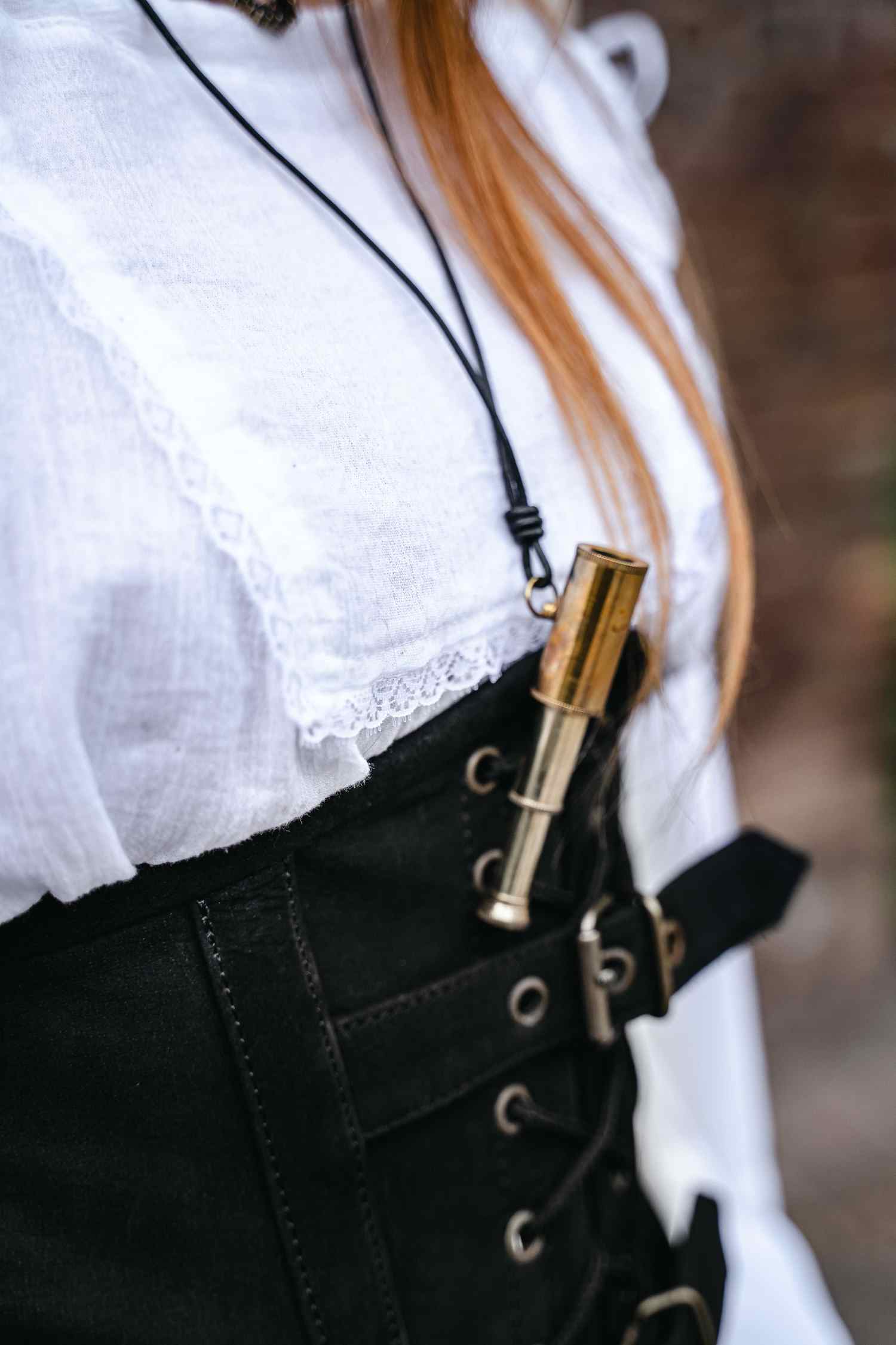 Schickes kleines Mini Piraten Fernrohr zum Umhängen mit Lederschnur, welches ihr mit einer verstellbaren Lederkordel einfach um den Hals hängt. Man kann sogar durchschauen!Größe :  Fernrohr ausgezogen 6cm  Länge beträgt ca. 40 cm  verlängerbar Leder Farbe:  messinggold Lederschnur schwarz Verfügbarkeit: kommt wieder Ende August