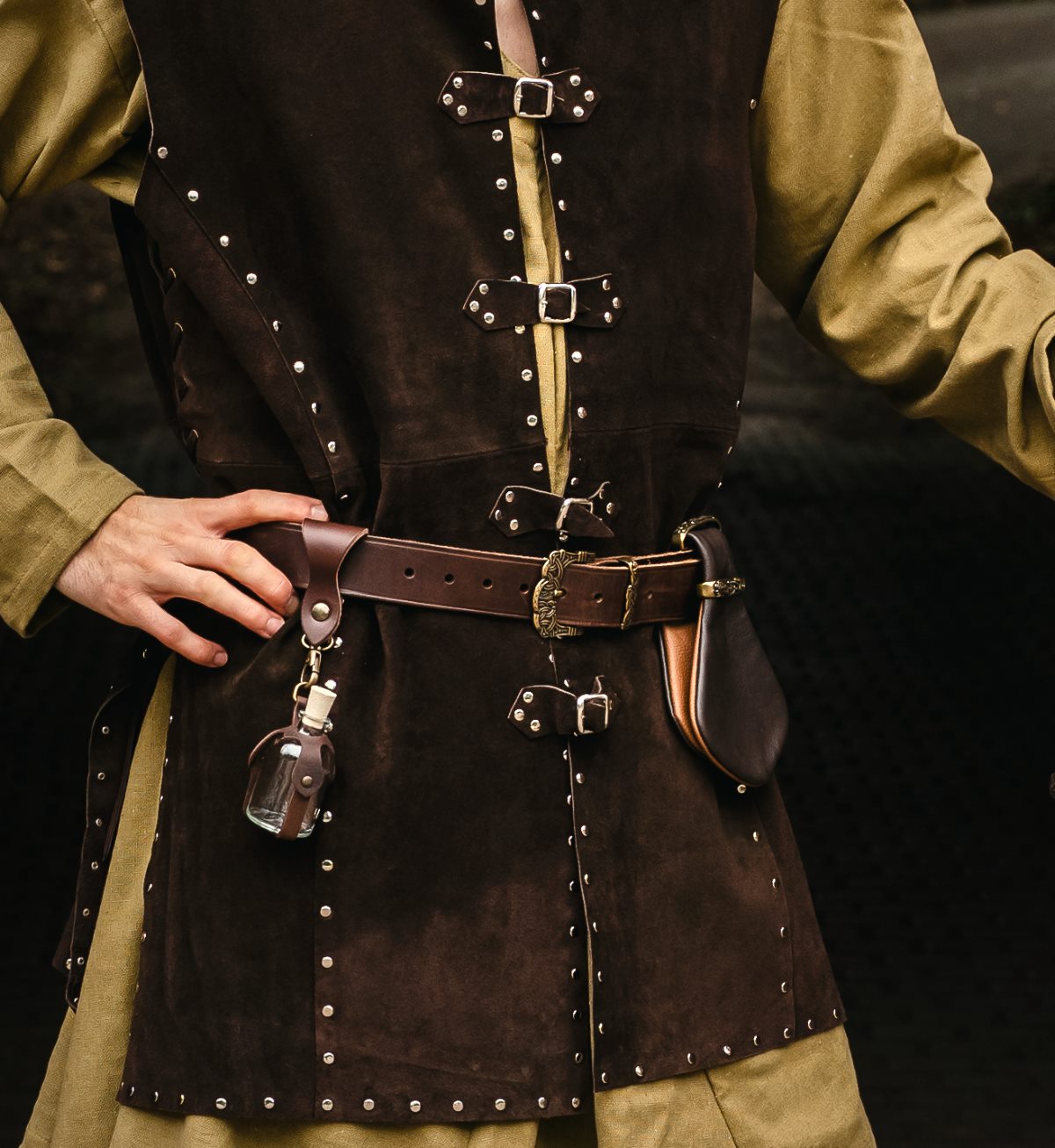 Zwei dekorative Prägelinien entlang der Kanten des Gürtels verleihen dem Mittelalter-Gürtel zudem ein elegantes Aussehen